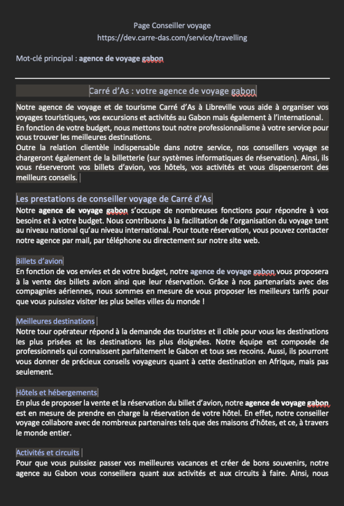 Le client m’a contacté en avril 2021 pour procéder au copywriting du contenu de son site internet.